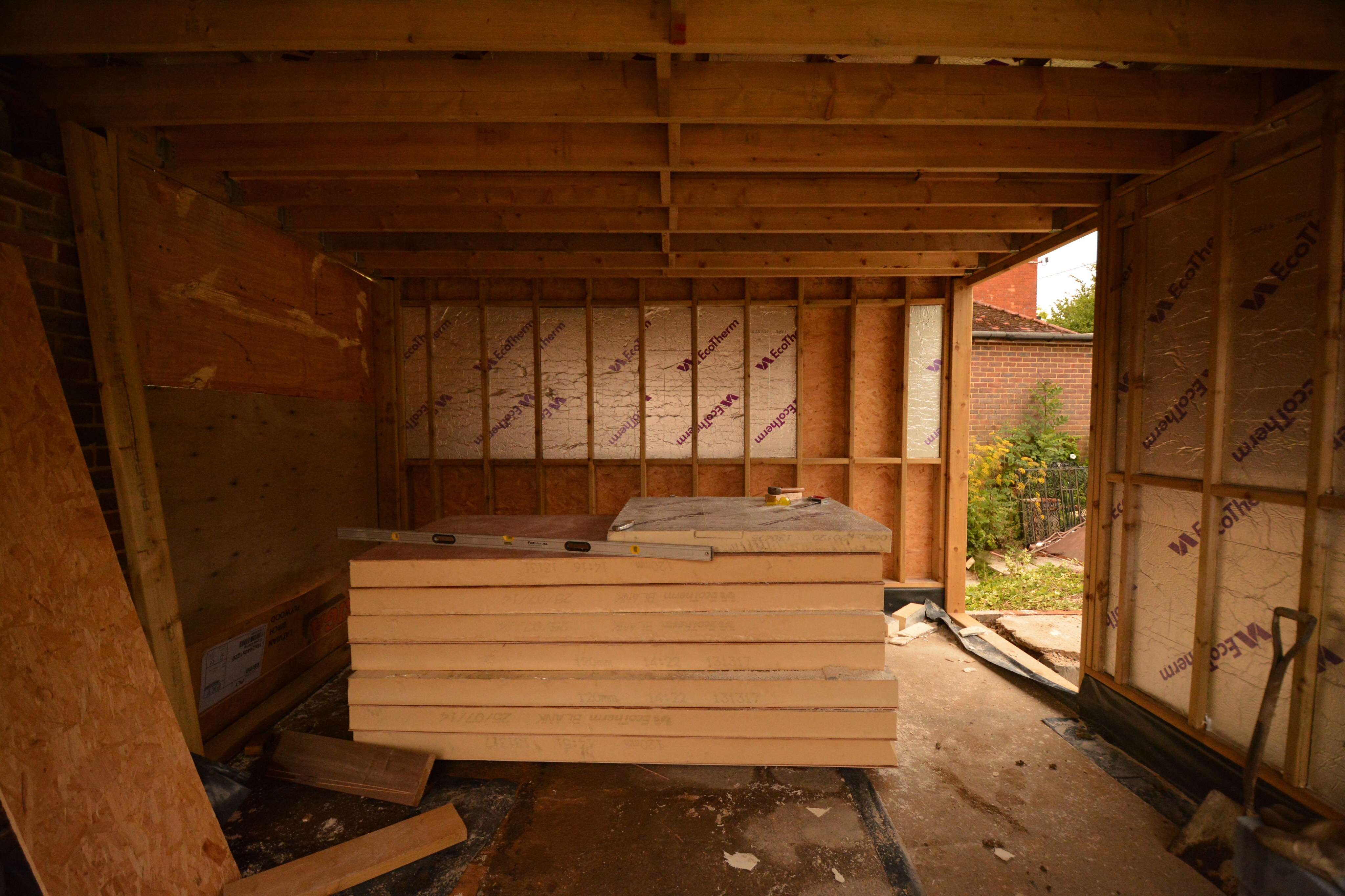 This morning we took another look at the house. The biggest change this week is how much the extension has progressed. The shell of half of it is now built, with the roof and insulation in-place.