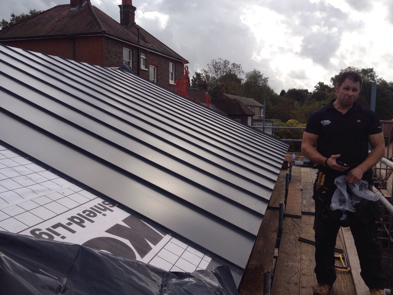 And then there’s the roof… fitted over five days by a team from Lincoln. One of the more technologically-advanced aspects of the build, James at CDMS discovered a more contemporary alternative to Zinc at this year’s Grand Designs Live exhibition. Manufactured by Tata Steel, it has the same standing-seam design that appealed with Zinc, but is produced to tighter tolerances, giving a more uniform finish (oh, and it’s also cheaper!). Some more techie details here…