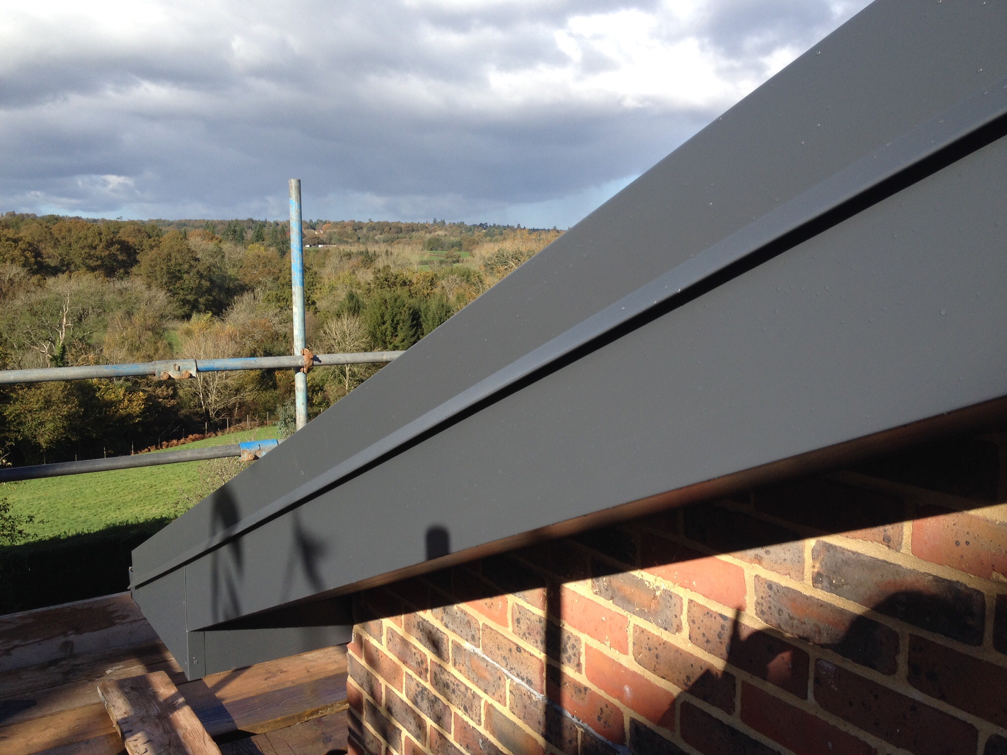 After the main roof sections were laid (two days), the guttering, drains, soffits and eaves were put into place…