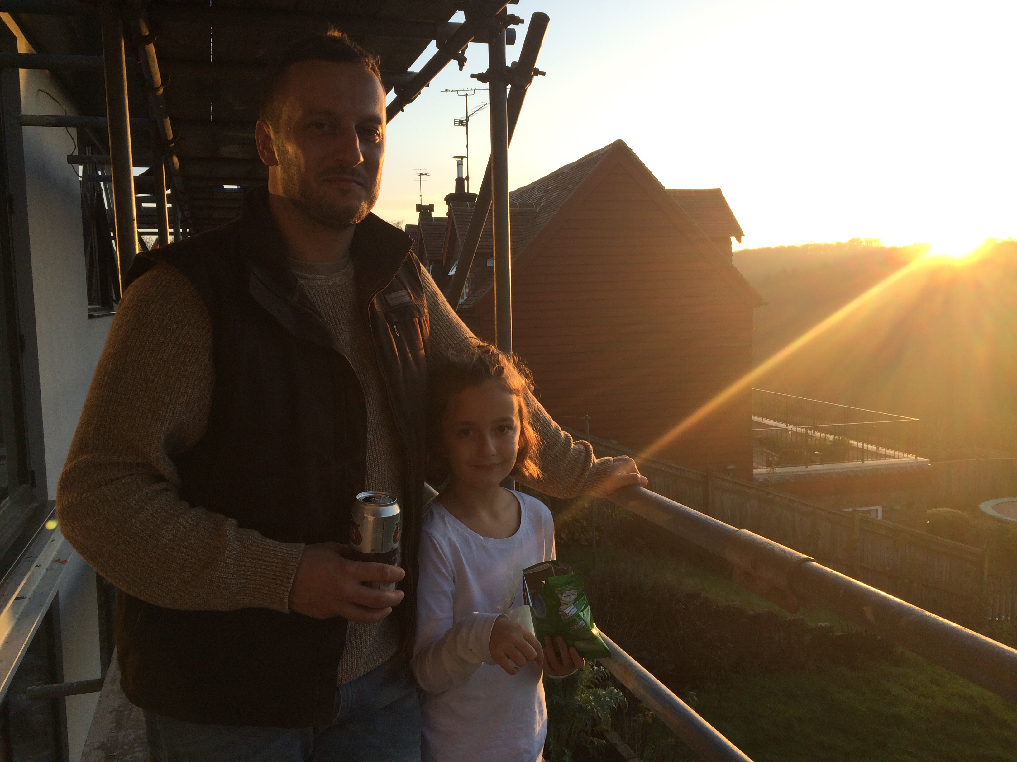 A cheeky beer on the builder’s balcony before the scaffolding came down