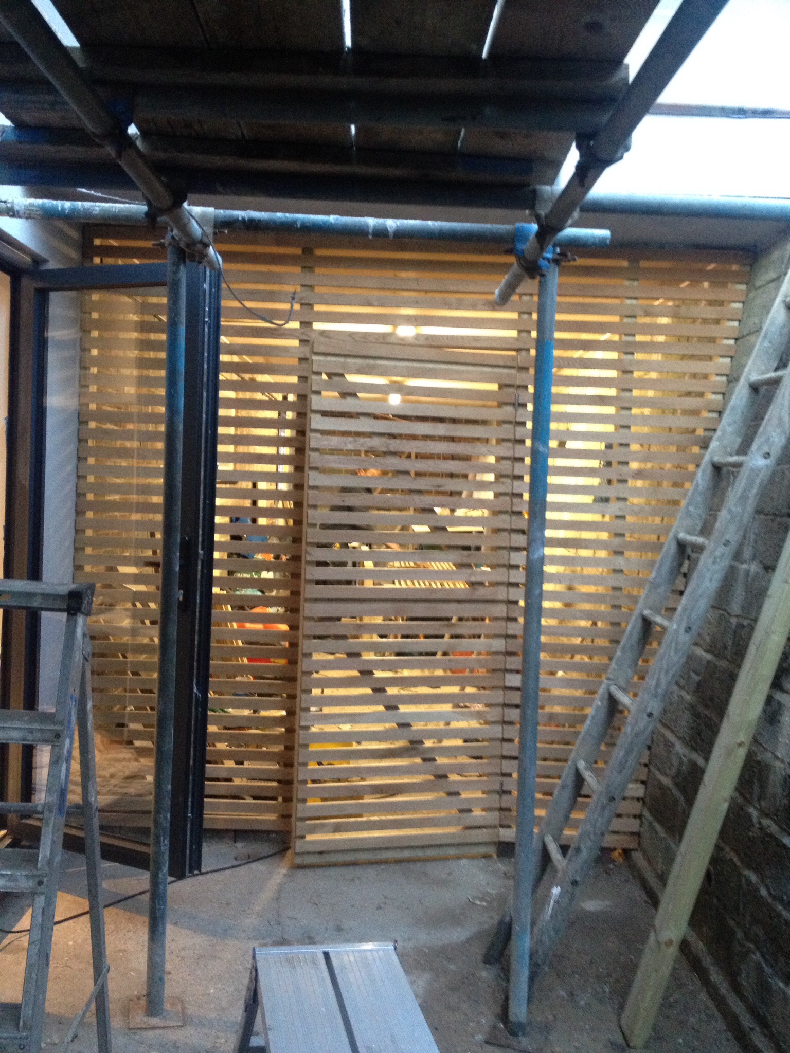 …And the oak slats arrived so the undercroft store can start taking shape: