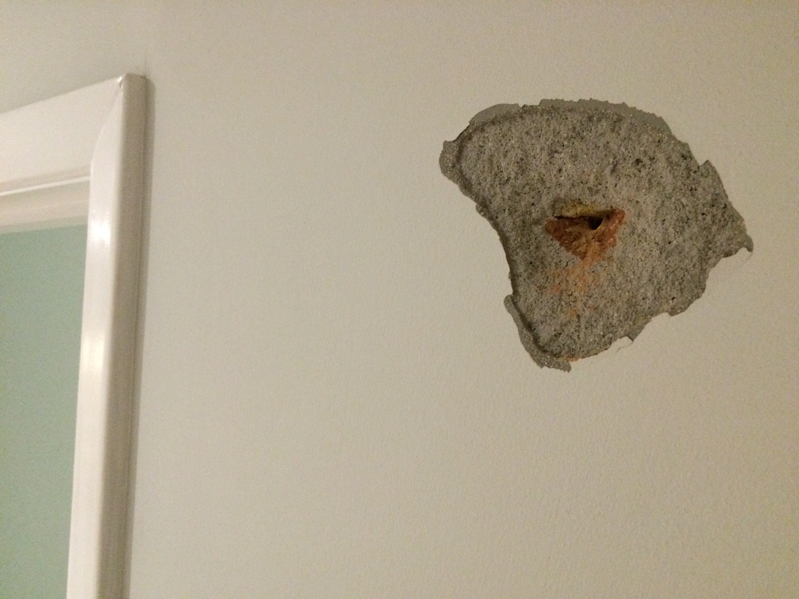 Frustrating, but not the end of the world – especially as it’s on a section of wall that can only be seen from the utility room (inside) and the back garden (outside), neither of which are the most popular viewpoints.