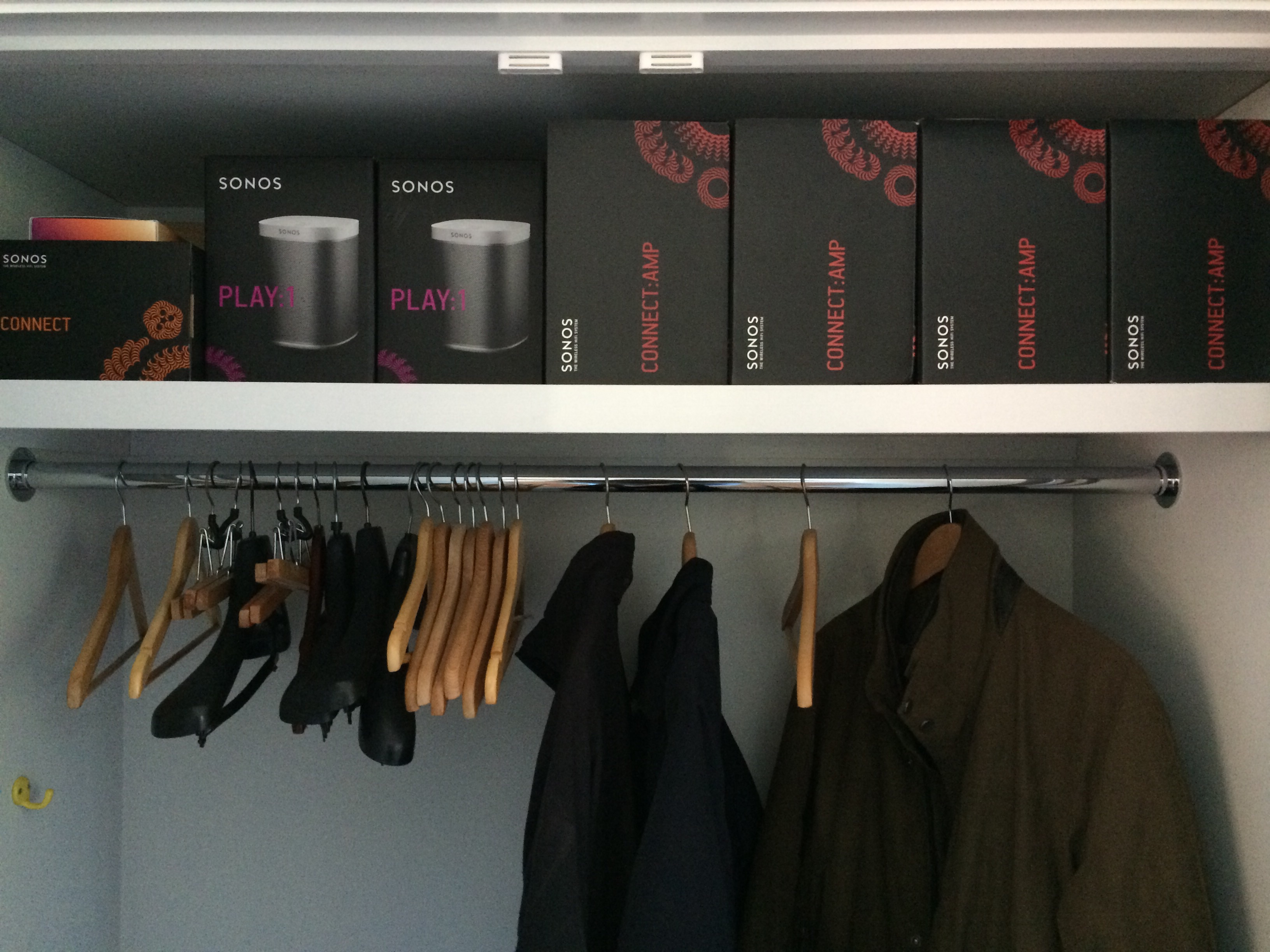 And finally, just before I boarded the flight to come back to the sandpit for the last couple of weeks, success at hooking-up the first of the amps to the ceiling speakers. I can’t tell you what a relief it was to hear some Coldplay gently filling the dining room and kitchen; it was the first time the cabling and speakers have been tested since they were installed and hidden away behind neatly-painted plasterboard. Fingers crossed the others all work too!