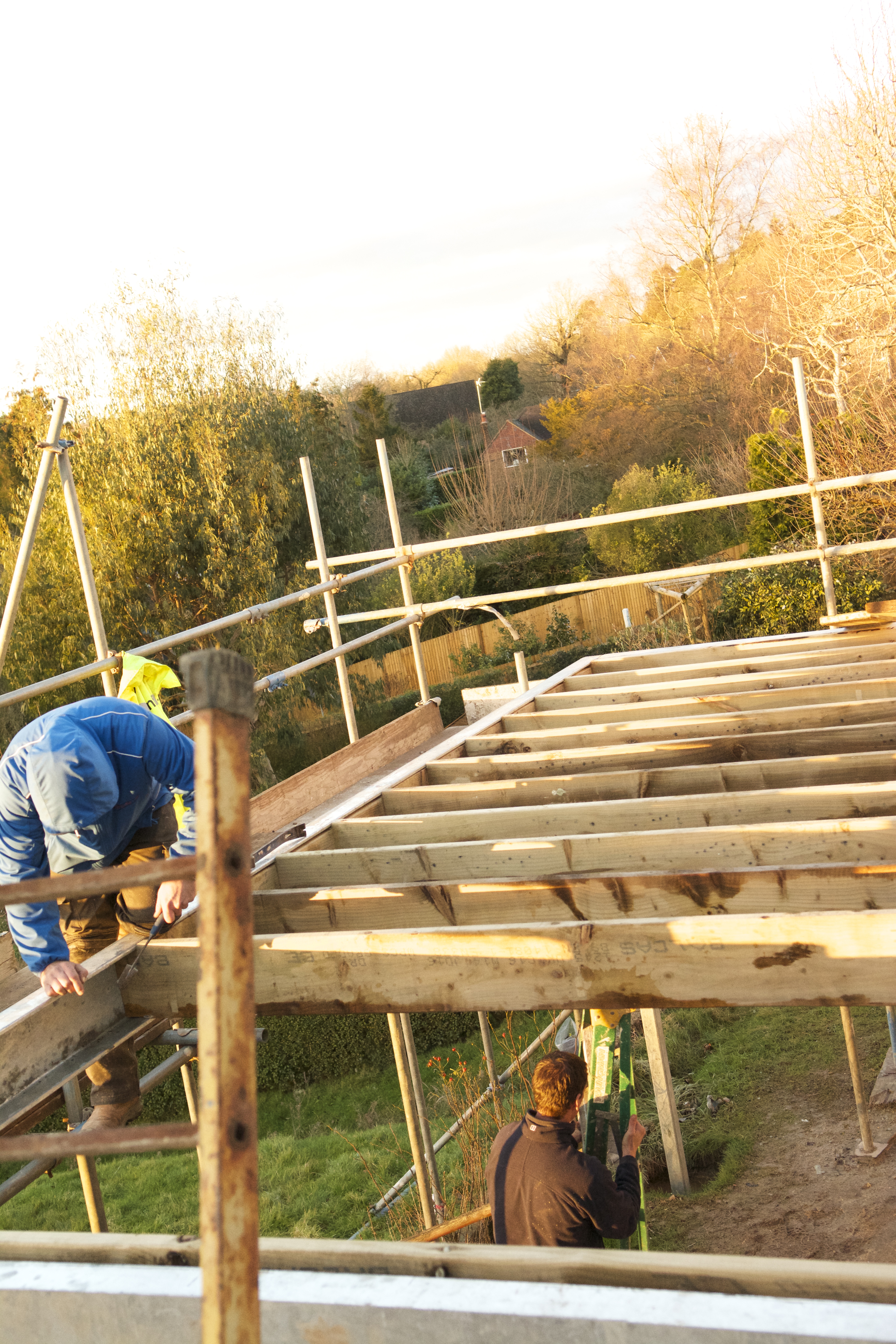 Happily, the timbers started to be laid on Friday and we now have a much better impression of the space we’ll have to enjoy once the weather picks-up…