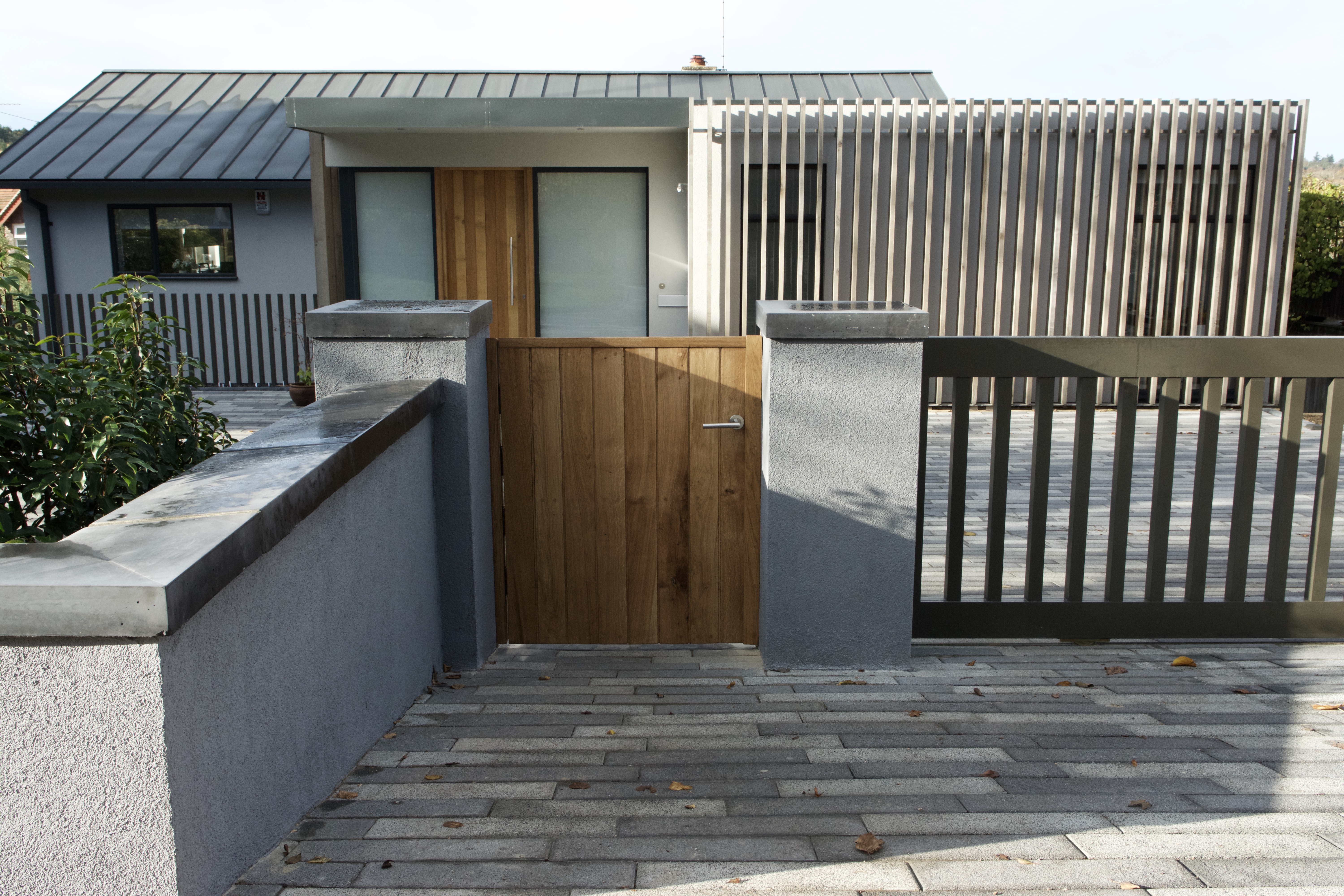 The quality of workmanship that went into creating the pedestrian gate is a testament to Pat’s skills and experience; it’s a very close match for the front door (produced over two years ago by a Brickhurst carpenter) and makes coming home a pleasure! Similarly, the proportions and colour of the vehicle gate are a good match those of the uprights around the retaining wall.